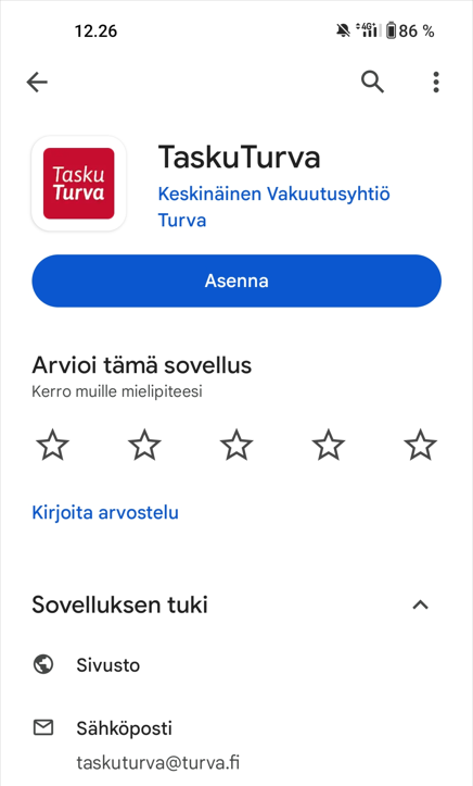 Tämän jälkeen saat näkyviin Asenna-painikkeen, josta voit asentaa TaskuTurvan uudestaan.